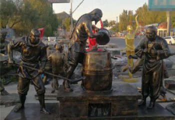 釀酒雕塑寓意酒是喜慶和團圓的象征。在中國傳統文化中,酒常常被用于慶祝節日、婚宴、壽宴等場合。例如,在春節、中秋節等重要節日,人們都會擺上美酒佳肴,與家人團聚,共度佳節。這充分體現了酒在中華民族傳統文化中的地位。酒文化無疑是一顆璀璨的明珠。